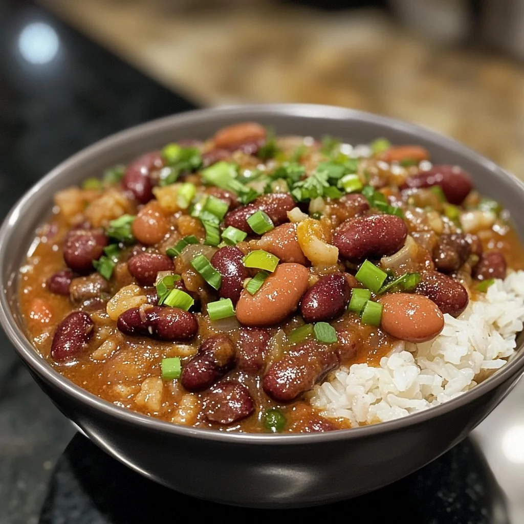 A classic Southern dish that combines creamy kidney beans, aromatic vegetables, and a flavorful blend of spices served over fluffy white rice.