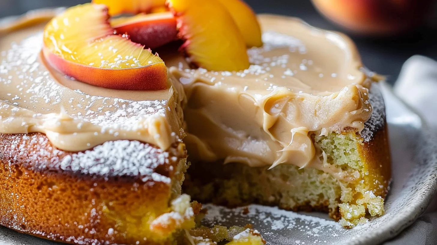 Keywords: peach cake, creamy frosting, homemade dessert, easy baking, fruity treat, delicious peaches