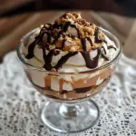 - Add your chosen garnish: either sprinkle crushed Skor bars or drizzle extra caramel and chocolate sauce.