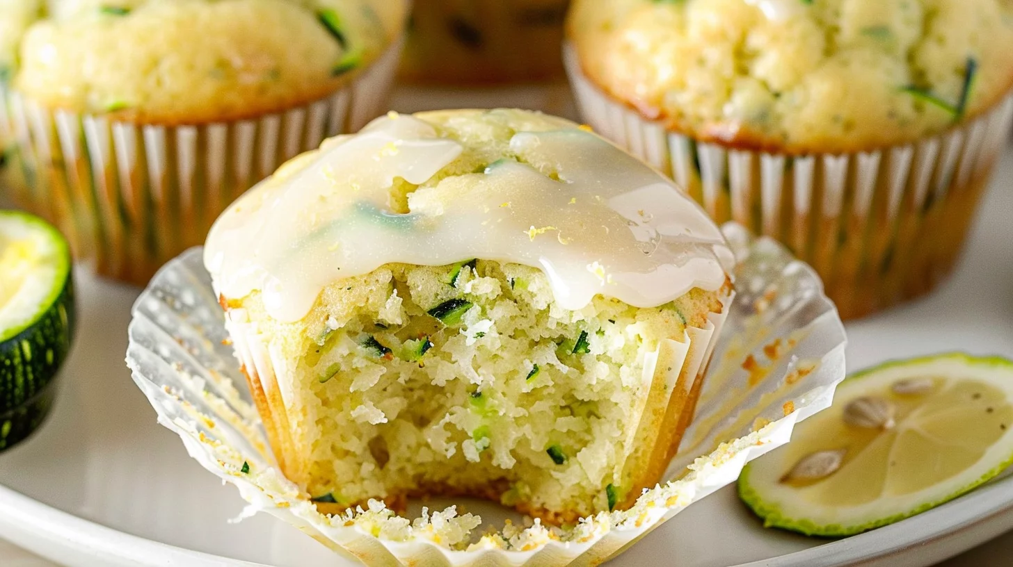 Keywords: lemon zucchini muffins, moist zucchini muffins, lemon glaze recipe, easy zucchini muffins, fluffy lemon muffins