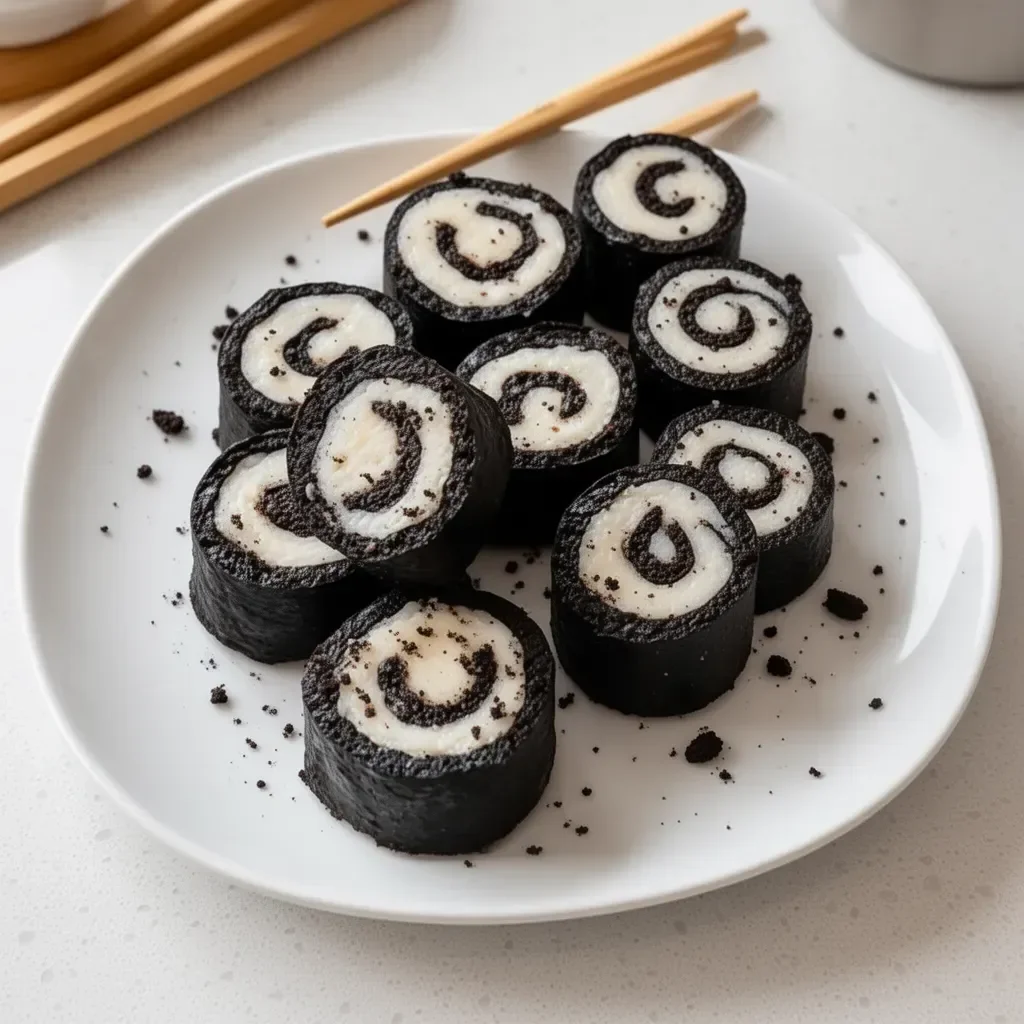 A playful twist on dessert, combining Oreo cookies with cream cheese to create fun sushi-style rolls.