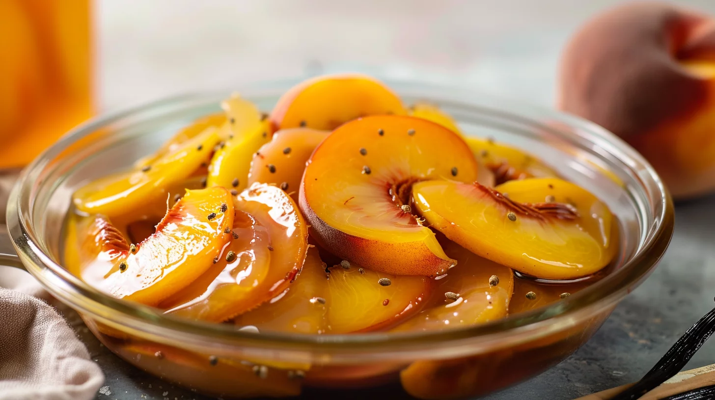 Every element in this recipe plays a crucial role. The peaches, of course, are the stars—ripe and juicy, they form the foundation of the dish. Apple cider vinegar adds a tangy sharpness, while honey lends a natural sweetness that balances everything perfectly. Ginger brings a warm spice, and cinnamon adds depth, creating layers of flavor that unfold with each bite. The vanilla, subtle yet essential, rounds out the profile with its aromatic notes.