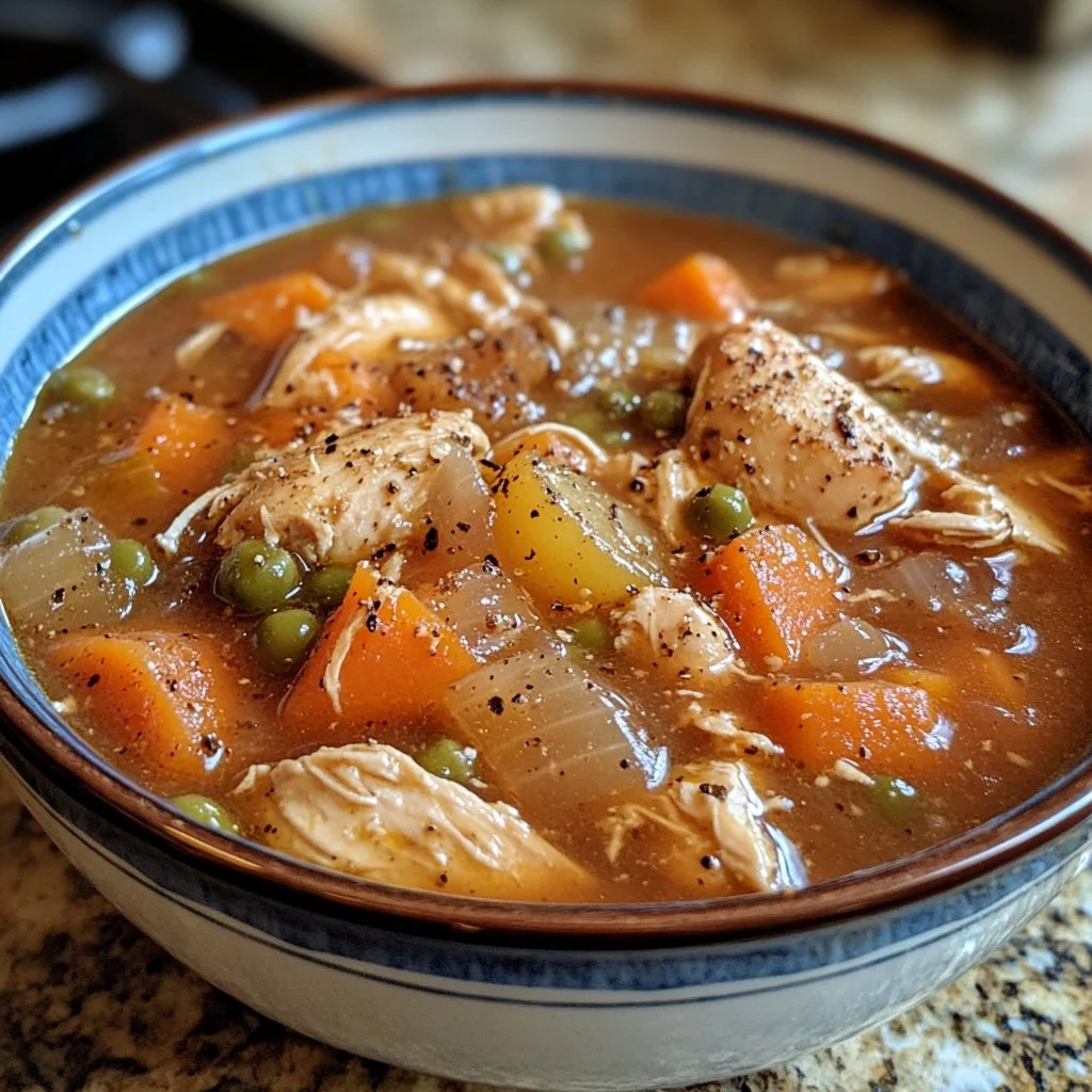 A comforting slow cooker chicken stew with tender chicken, root vegetables, and aromatic seasonings, perfect for chilly evenings.