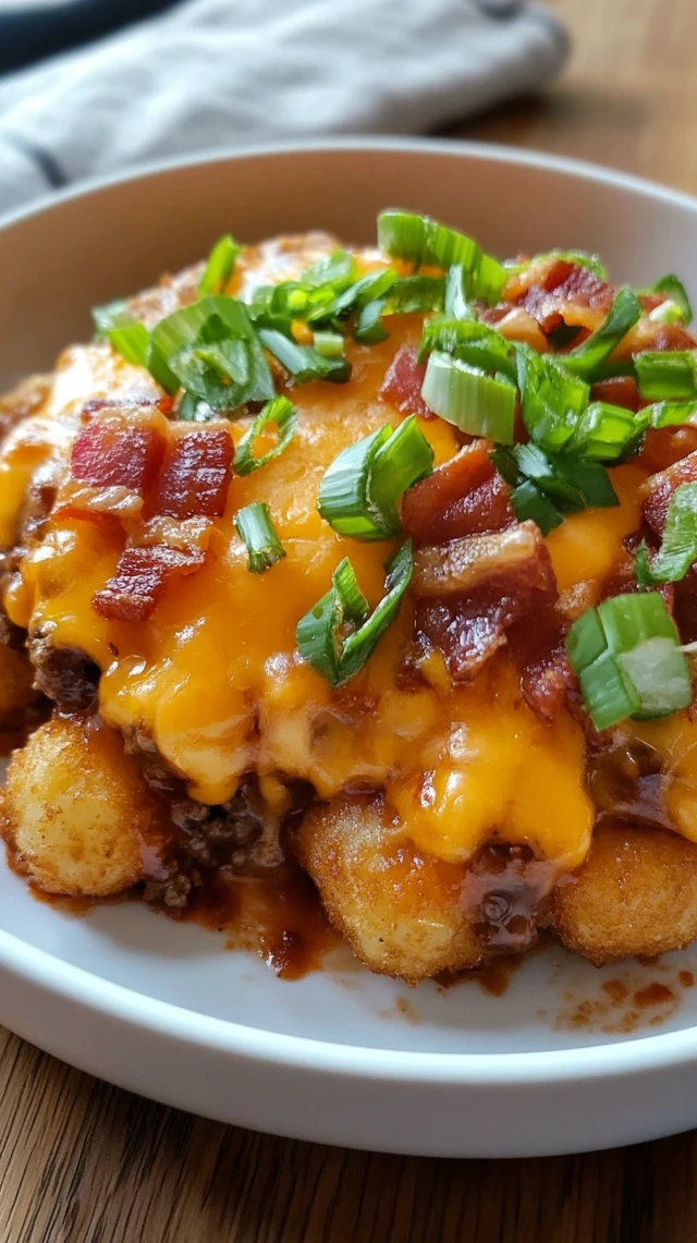 BBQ Bacon Tater Tot Cheeseburger Casserole