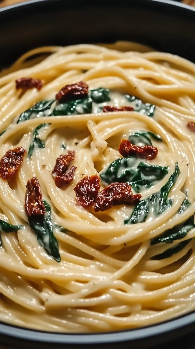 Creamy Garlic Pasta with Spinach and Sun-Dried Tomatoes