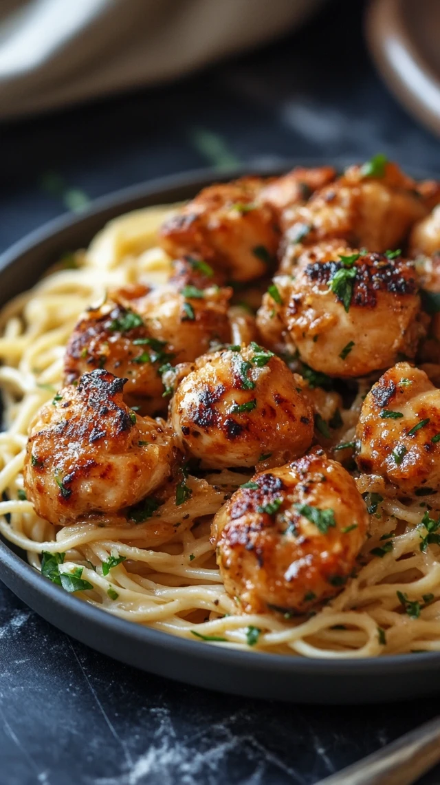 Garlic Butter Chicken Bites with Creamy Parmesan Pasta