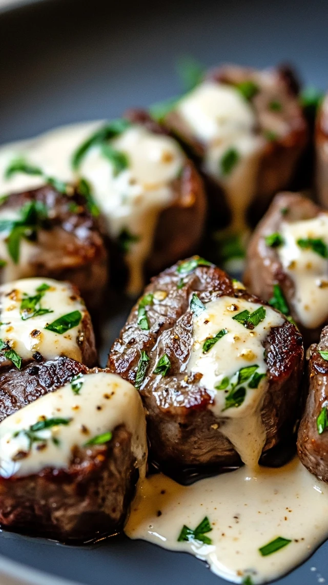Garlic Butter Steak Bites with Parmesan Cream Sauce