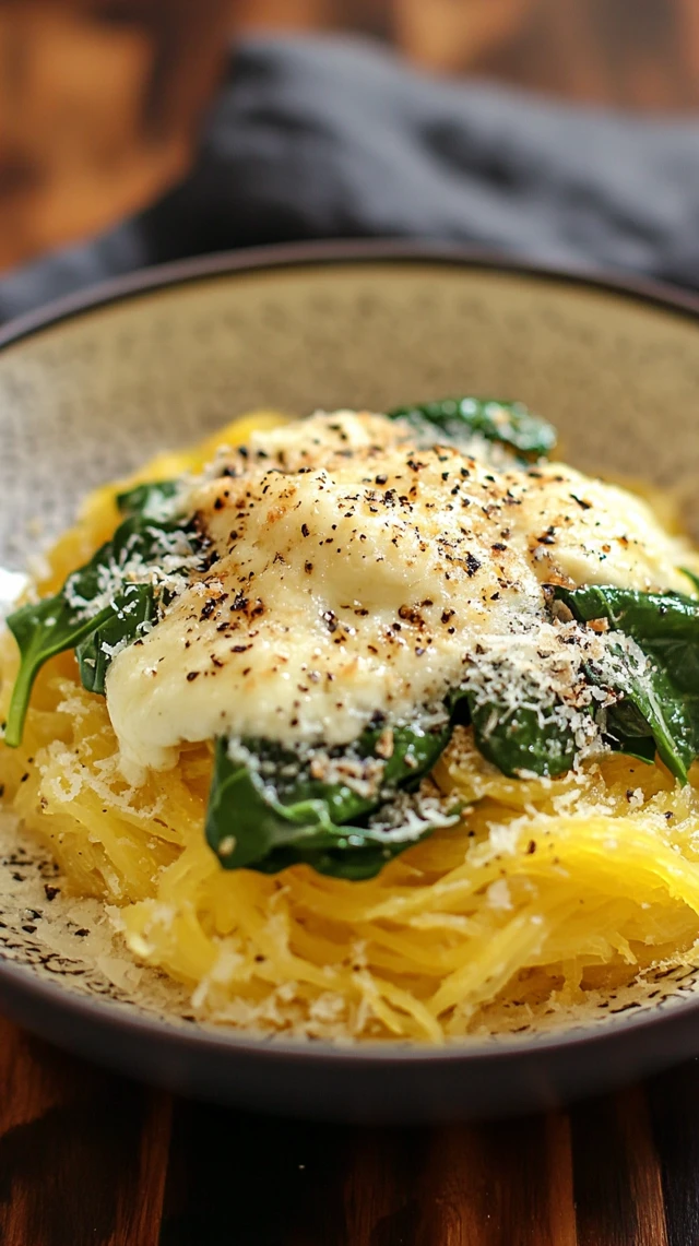 Garlic Parmesan Roasted Spaghetti Squash with Spinach and Mozzarella