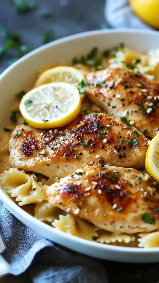 Lemon Garlic Chicken with Creamy Bowtie Pasta