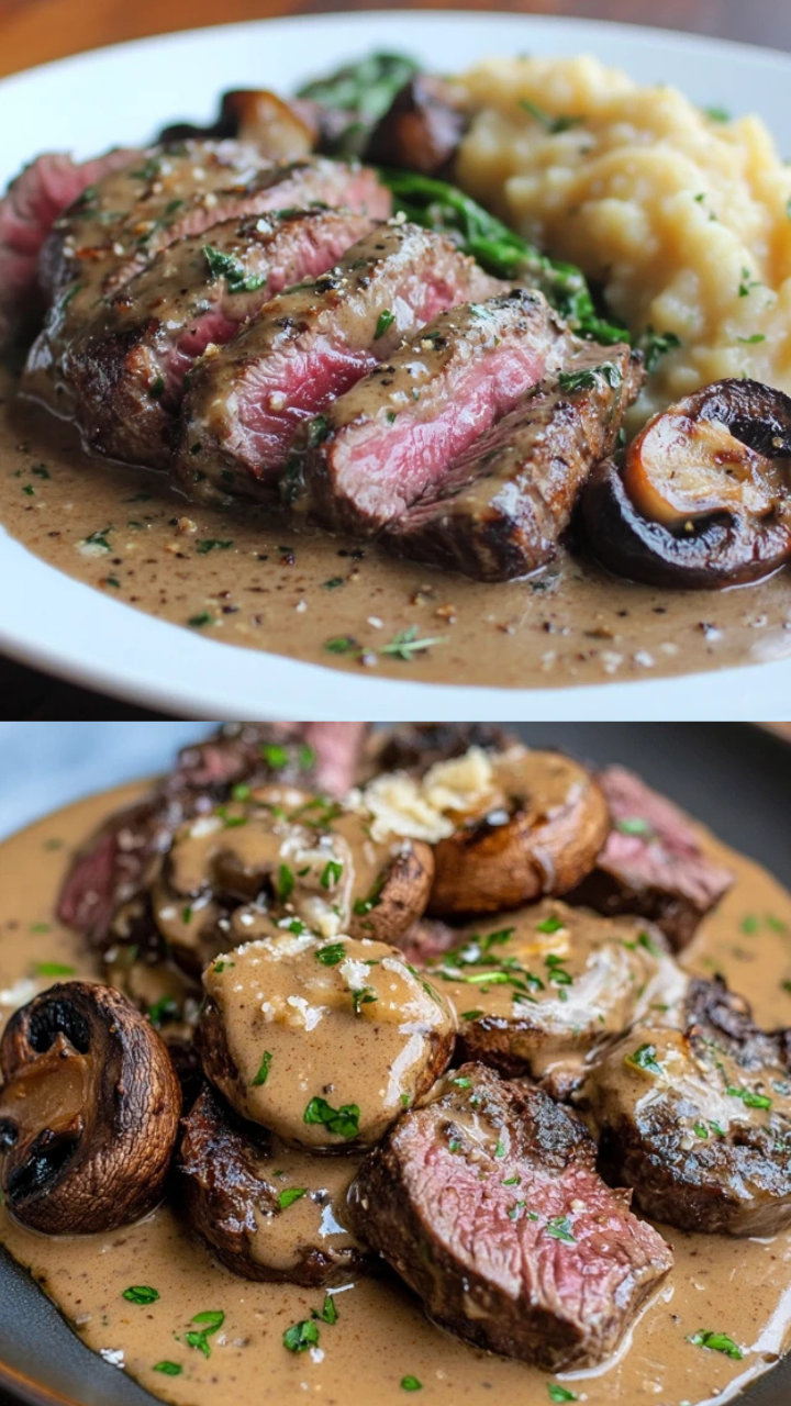 Roasted Venison in Garlic Parmesan Sauce with Portobello